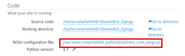 그리고, WSGI 환경설정 파일에 들어간다.