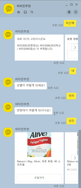 챗봇 프로젝트의 일환으로, 나이, 성별, 증상을 받아와 그에 맞는 비타민 제품을 아이허브 사이트에서 긁어와 결과를 보여주려고 했다.