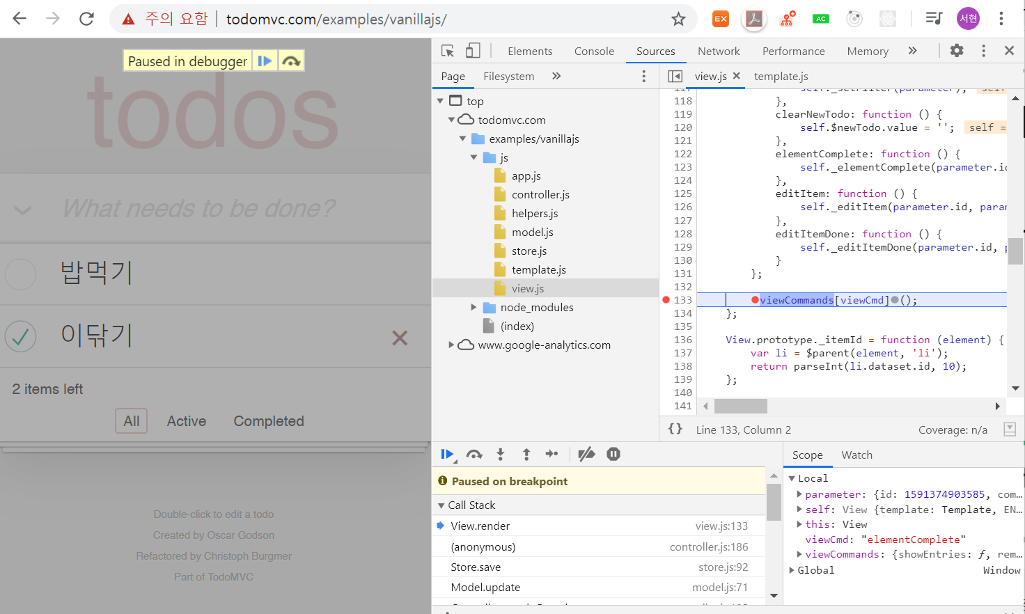 이 버튼들을 활용해서 해당 함수 안의 코드를 한 라인씩 실행시키거나,