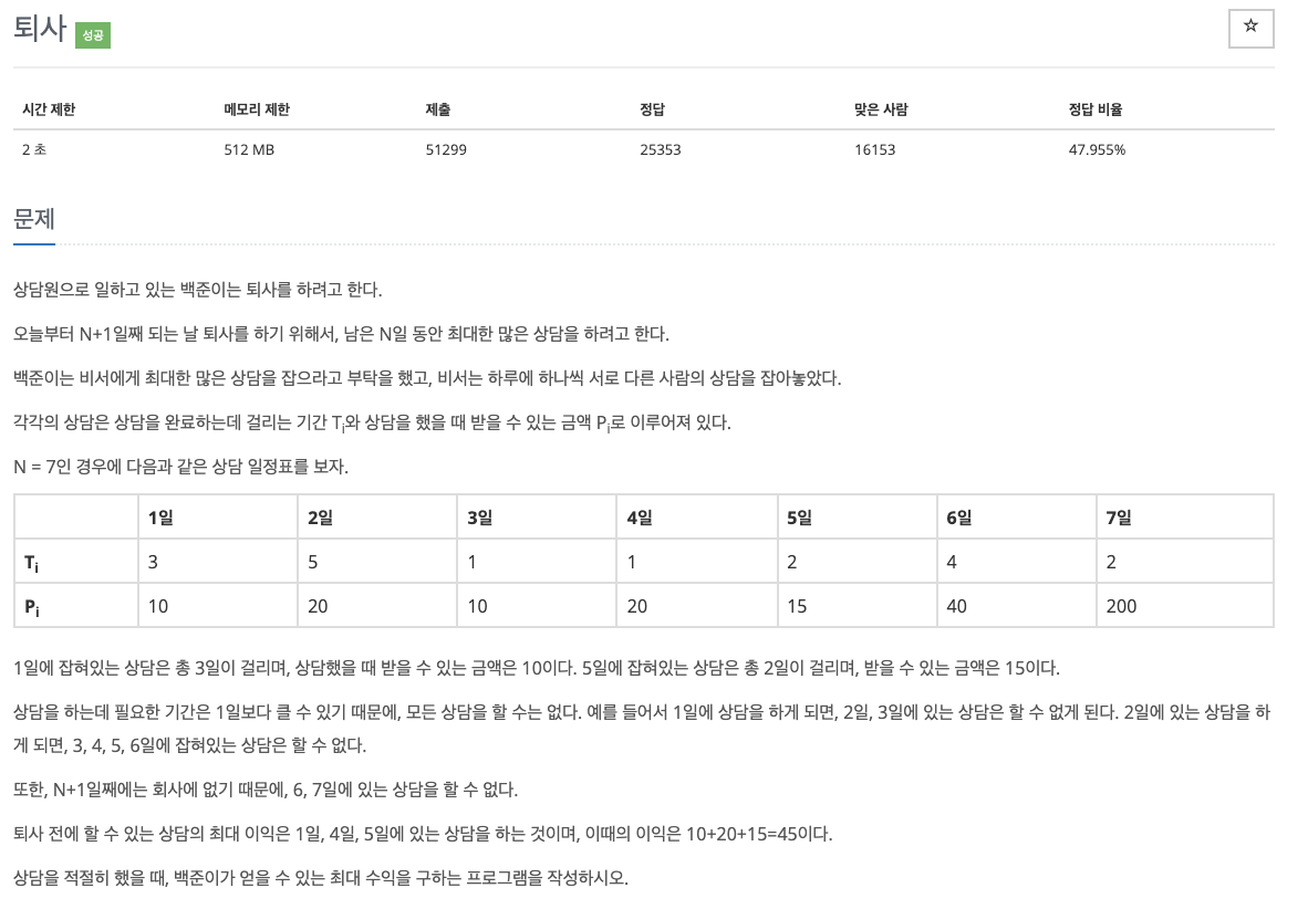 dp[오늘] = max(dp[오늘 스케줄 소화할 경우], dp[오늘 스케줄 소화하지 않을 경우])